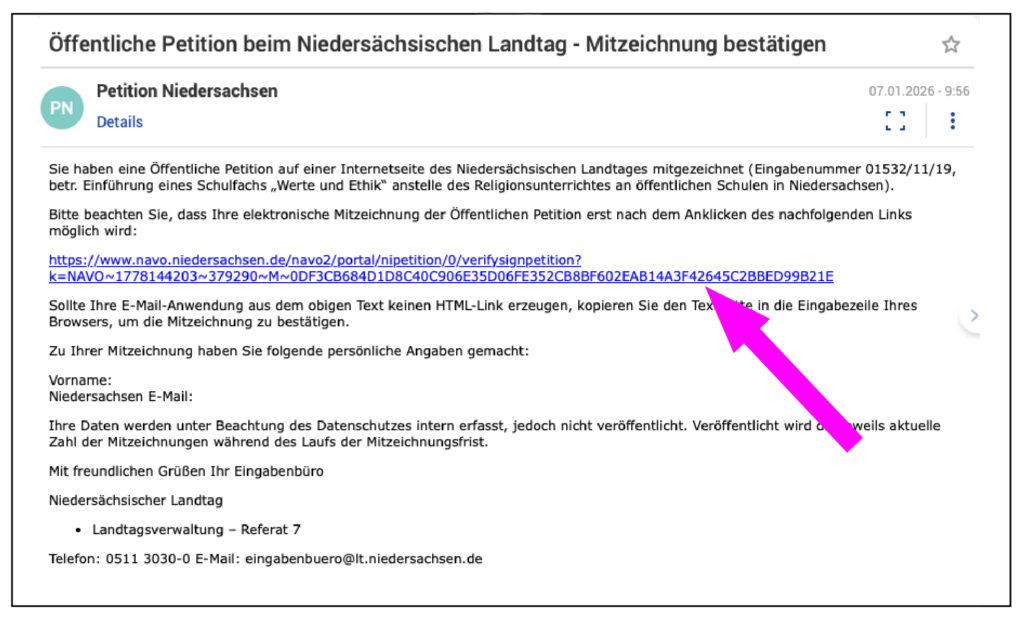 - Suchen Sie nach einer Mail vom Niedersächsischen Landtag (ggf. auch im Spam-Ordner nachsehen)