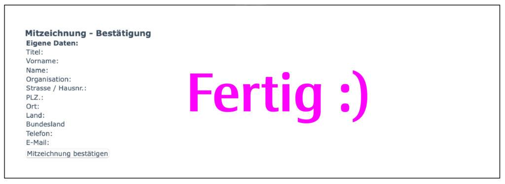 Erst nach diesem letzten Klick auf den Button „Mitzeichnung bestätigen“ ist die Mitzeichnung abgeschlossen.