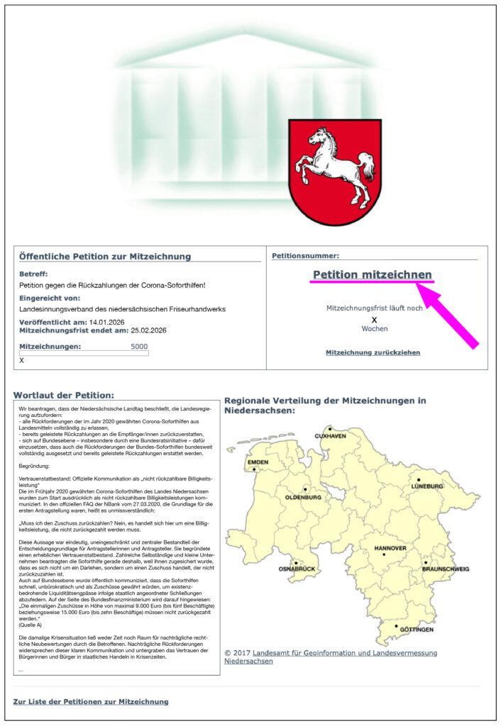 Mit dieser Anleitung können Sie unsere Petition beim Niedersächsischen Landtag online unterstützen („mitzeichnen“). Das dauert in der Regel nur wenige Minuten.