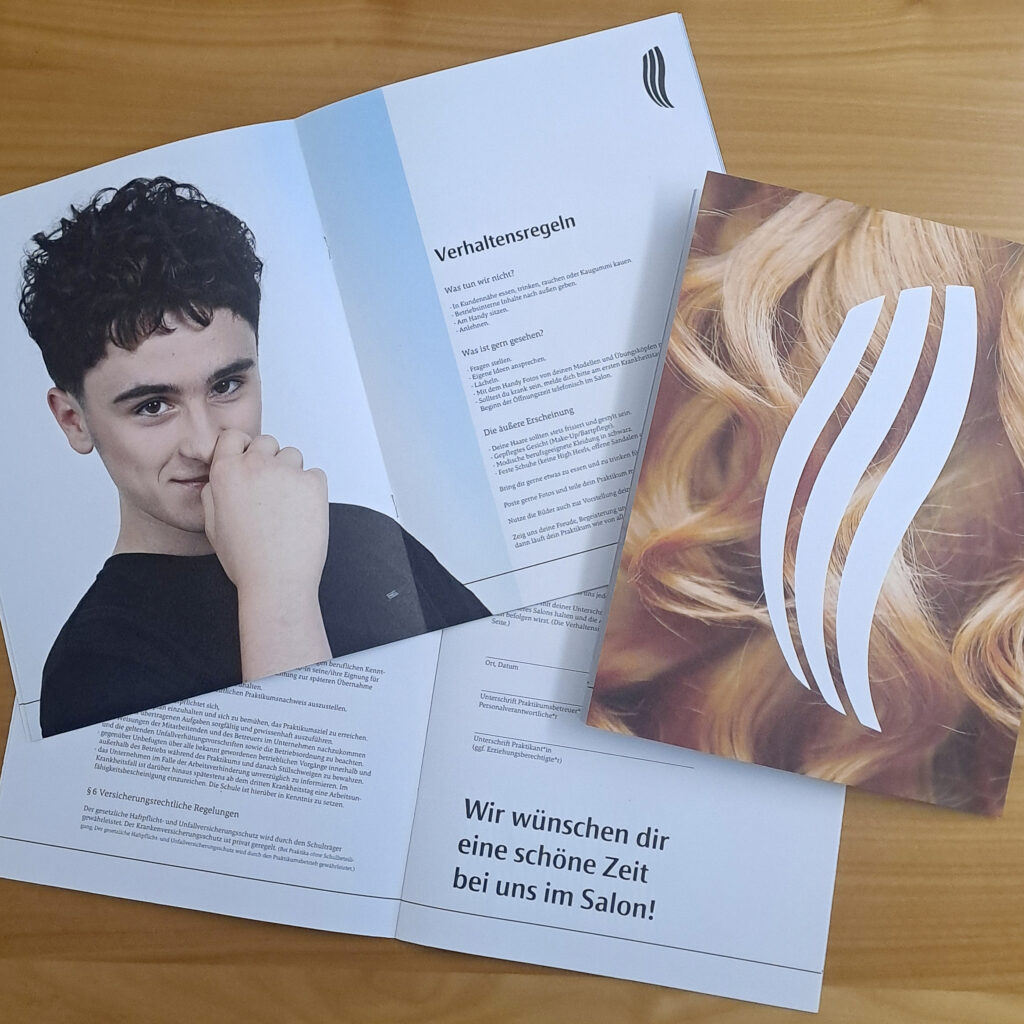 Von Friseur:innen entwickelt und für eine schnelle, unkomplizierte und erfolgreiche Praktikumszeit – ein Mappe mit allen relevanten Information. Nutzen Sie die Möglichkeit und holen Sie sich ihre Mappe!